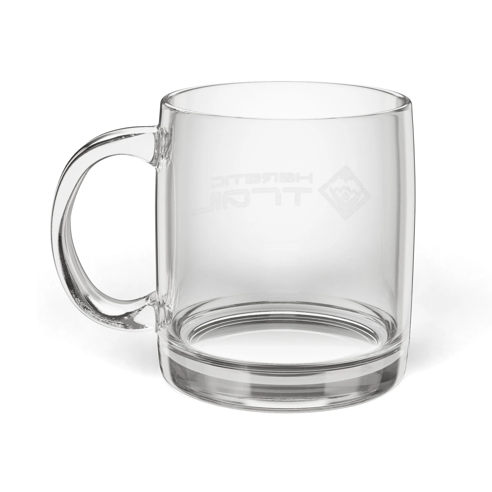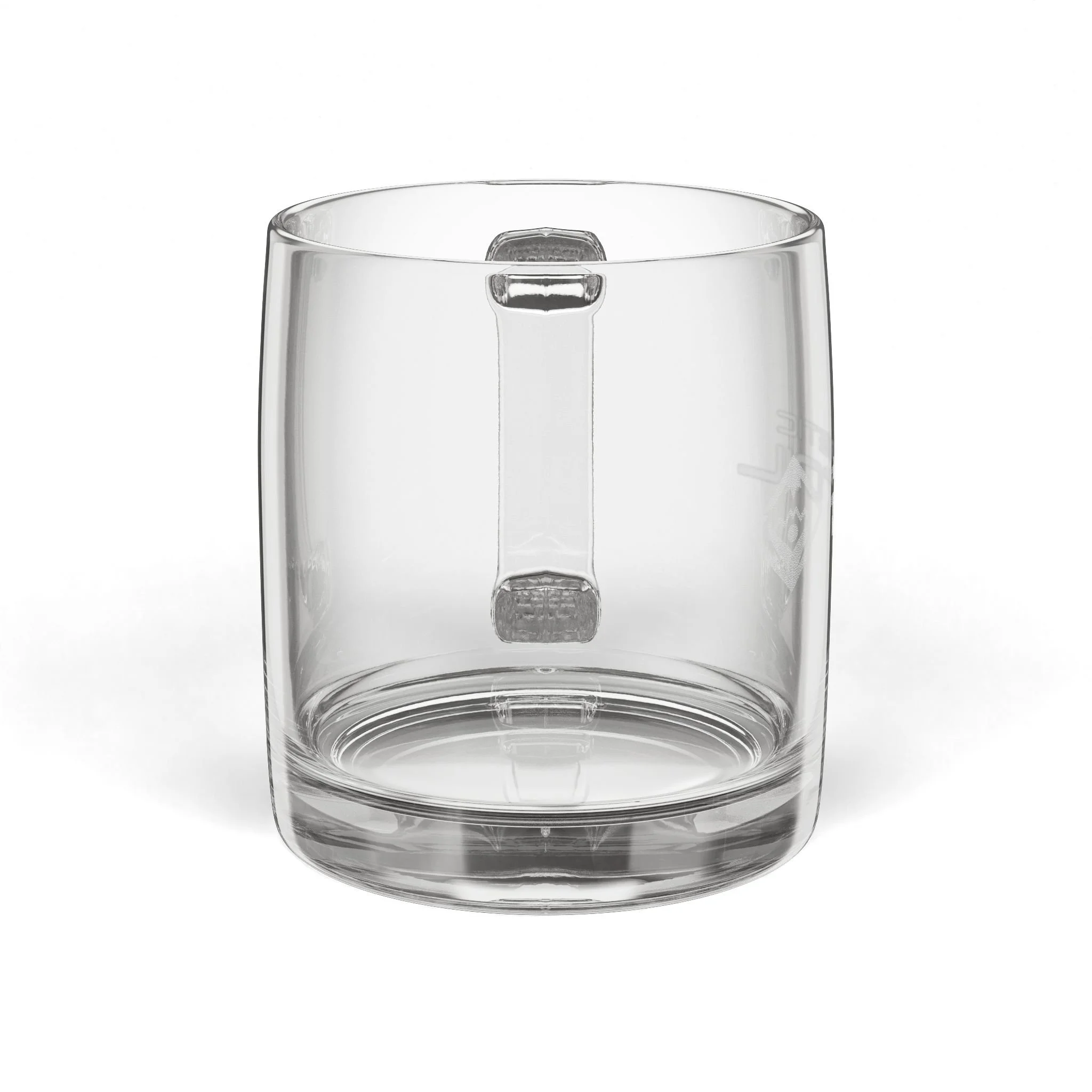 A clear glass mug with a quiet, refined presence. The laser-engraved design is permanent and crisp, giving it a subtle depth that won’t fade or wear. Durable enough for daily use and clean enough to elevate any morning ritual—whether it’s coffee, tea, or something cold after a fun day out.