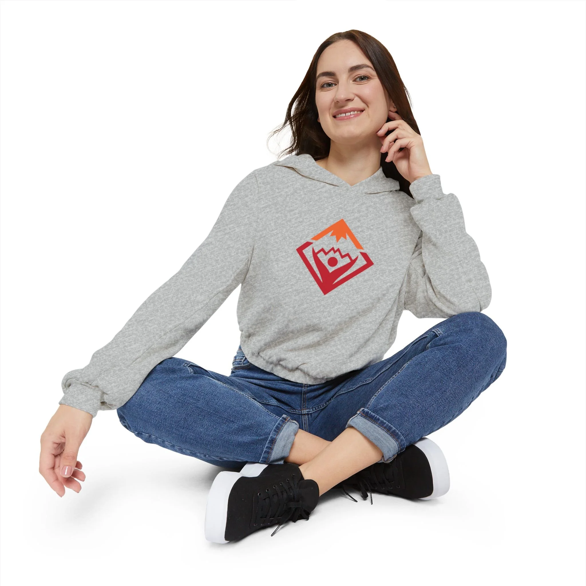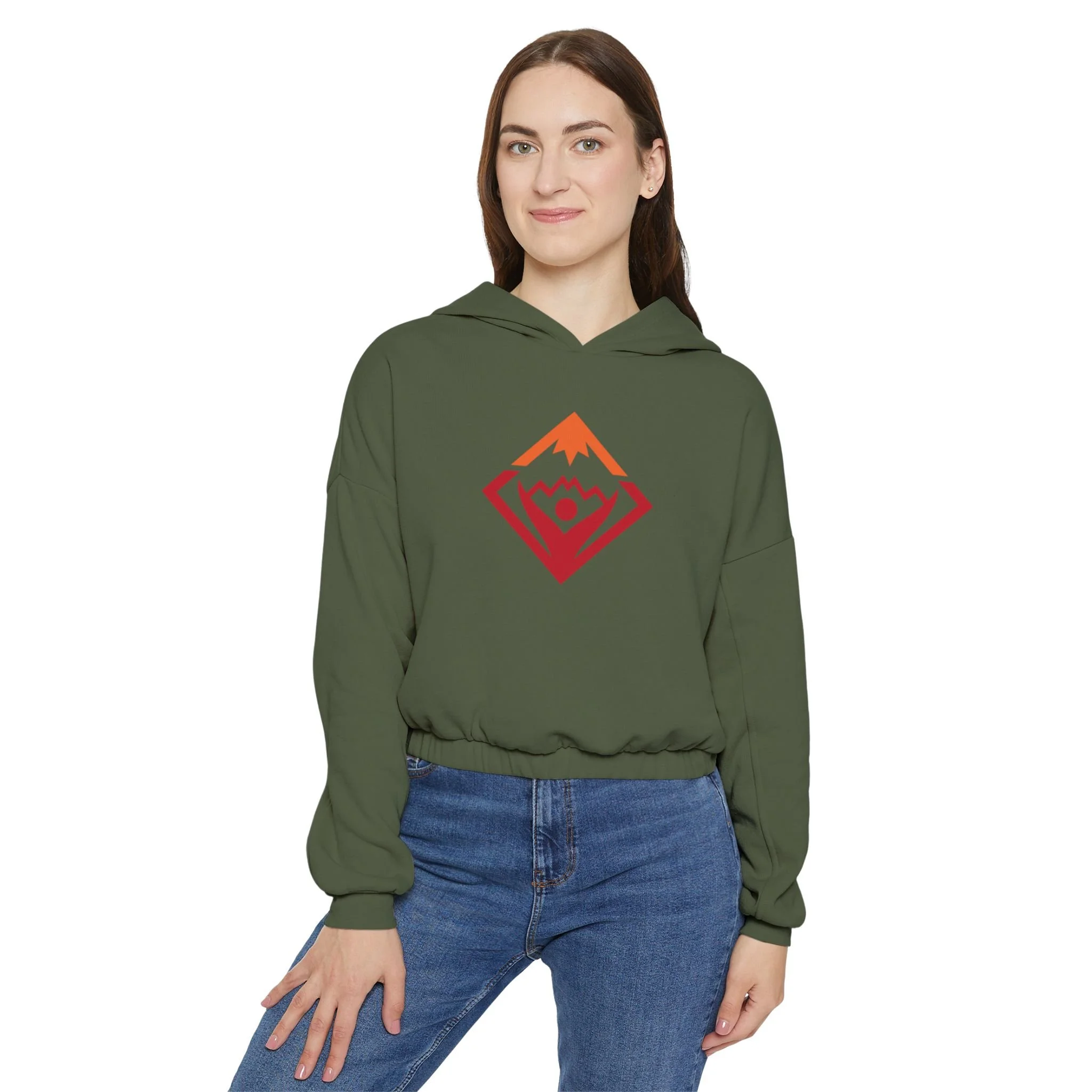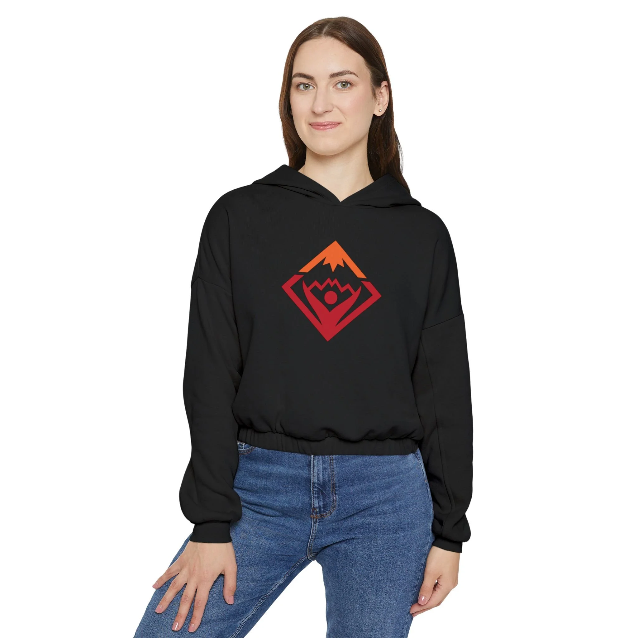 This hoodie pairs a soft fleece interior with an oversized, boxy shape for a relaxed silhouette. The mid-length cut and cinched hem give it a clean, structured look that works from trailhead warm-ups to slow mornings at home.